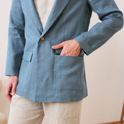 Men's linen Jacket. Wedding Blazer. Color in the picture – Blue grey. Men’s Linen Jacket made from 100% Linen and