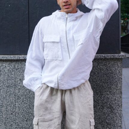 Men's loose linen jacket with patch pockets. Color in the picture – White. This jacket is made from 100% Linen