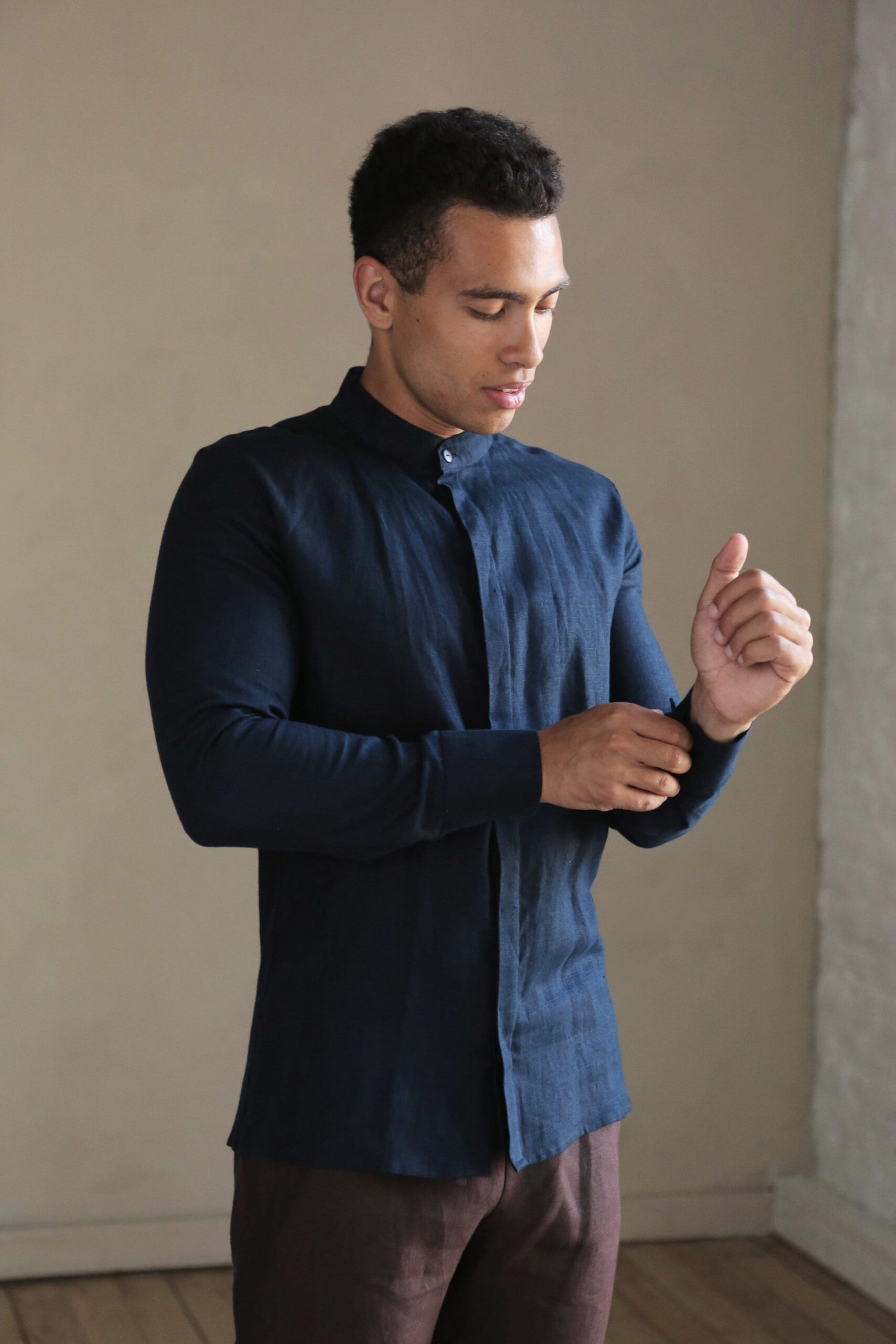 Comfortable and stylish men's shirt. Made from 100% linen and available in many colors. This shirt is versatile, wear it on the street, at the office, business meeting or at home. The natural fabric molds to your body shape and over time becomes softer.