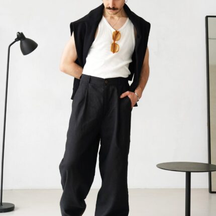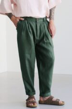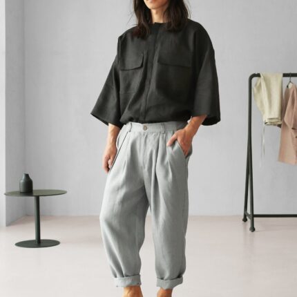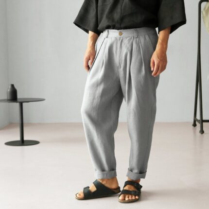 Loose-fit pants are made from 100% Linen and available in a variety of colors.