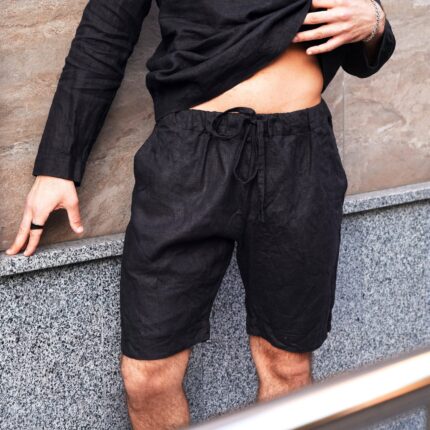 Drawstring Linen Pants Beige Mood Linen for Men Tapered Shape