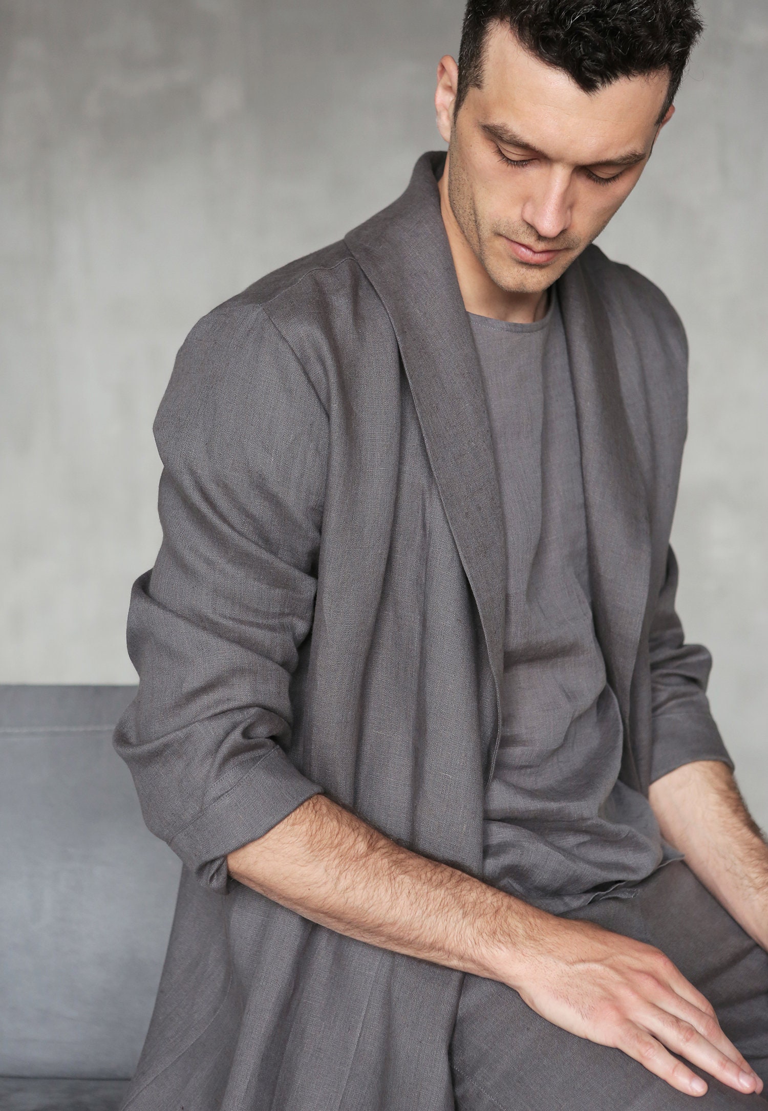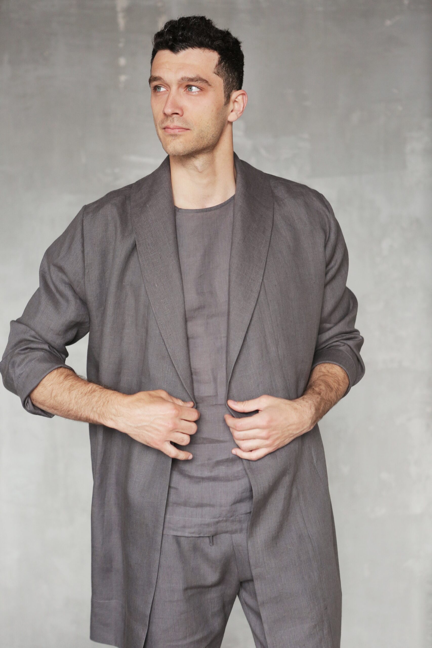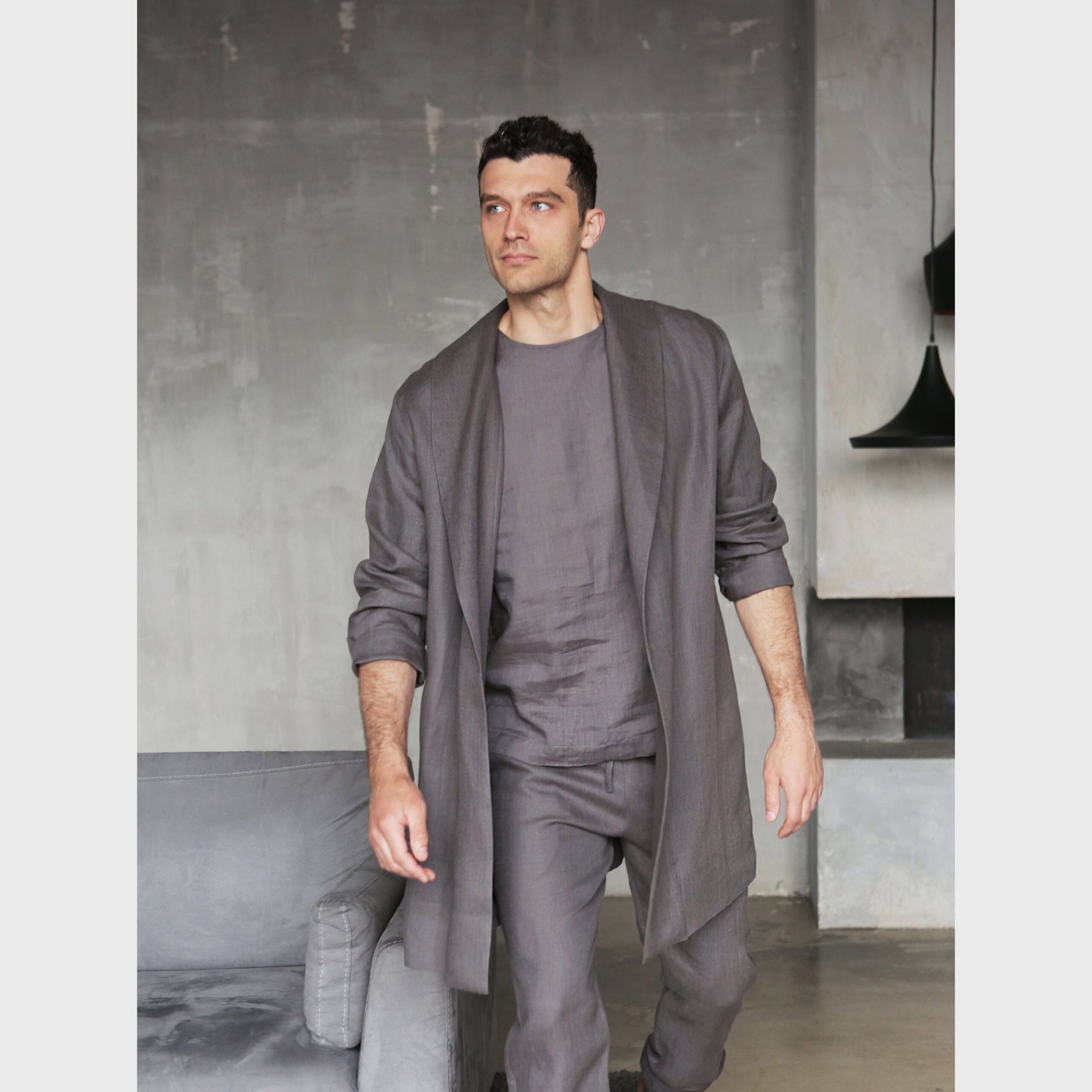 Linen Cardigan Artisan Detail Linen Fabric for Men Soft Contour Travel Companion