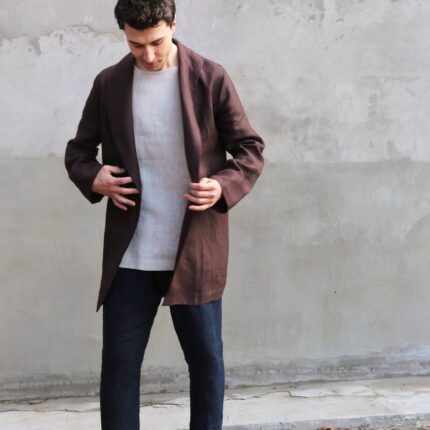 Men’s Linen Trench made from 100% Linen and available in a variety of colors. Wear it as a linen coat, summer cloak, free breed jacket. Perfect for spring – autumn weather. The cut of our clothes coined so that it can look appropriate, both on the street and at home.