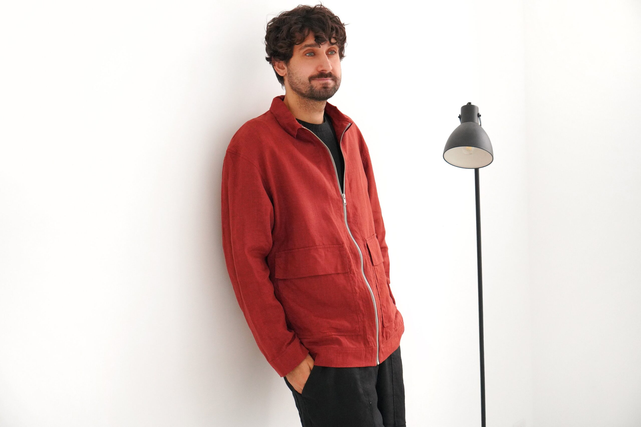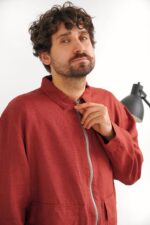 Comfortable and stylish men's bomber jacket. This bomber jacket is versatile, wear it on the street, at the office, at business meetings, or at home. The natural fabric molds to your body shape and over time become softer.