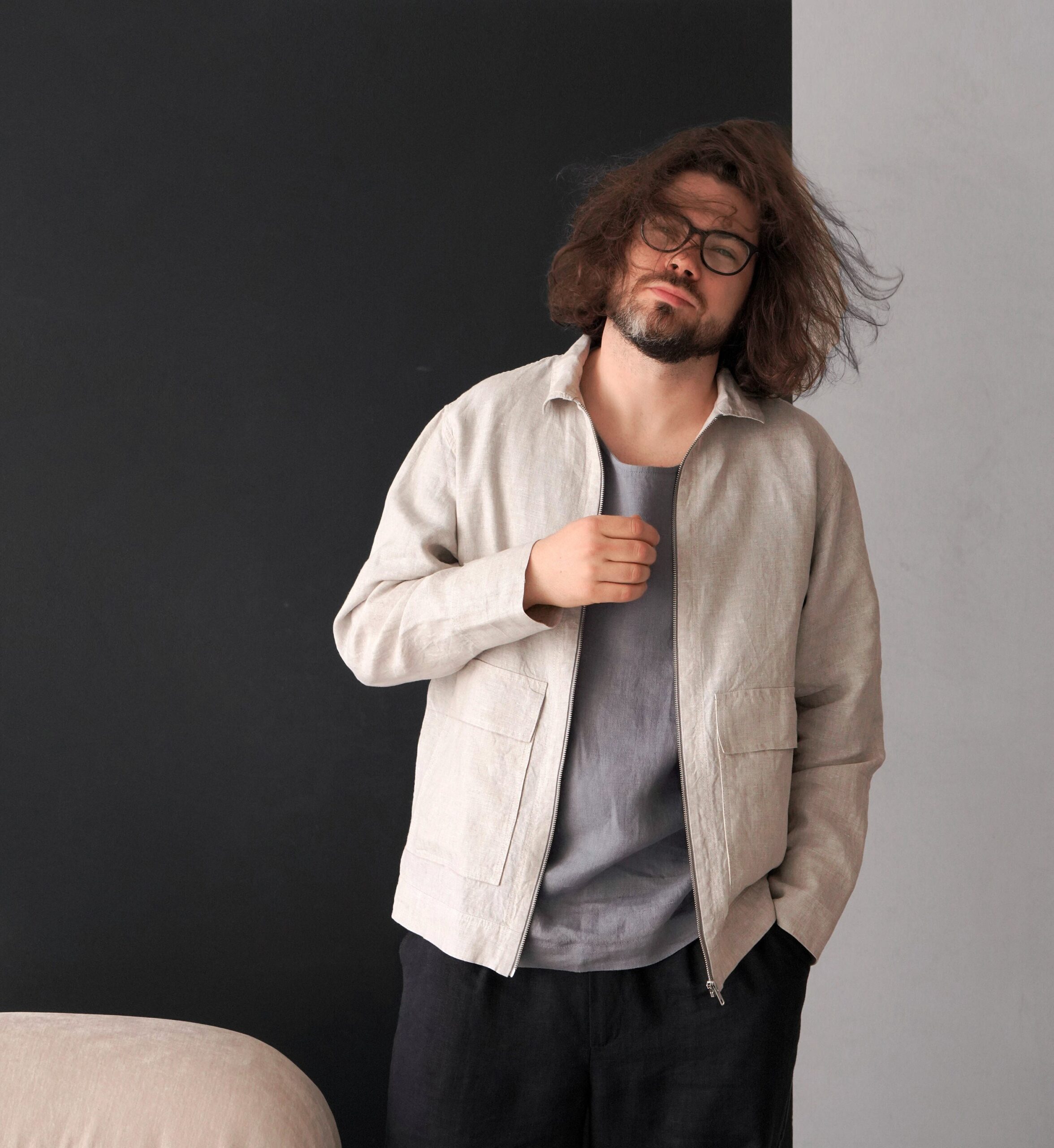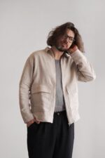 Comfortable and stylish men's bomber jacket. This bomber jacket is versatile, wear it on the street, at the office, at business meetings, or at home. The natural fabric molds to your body shape and over time becomes softer.
