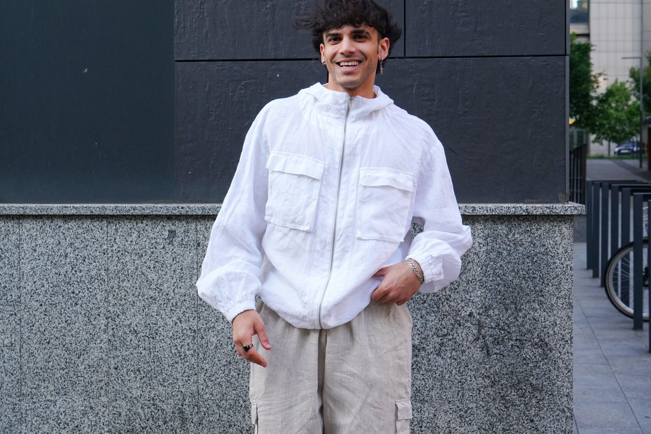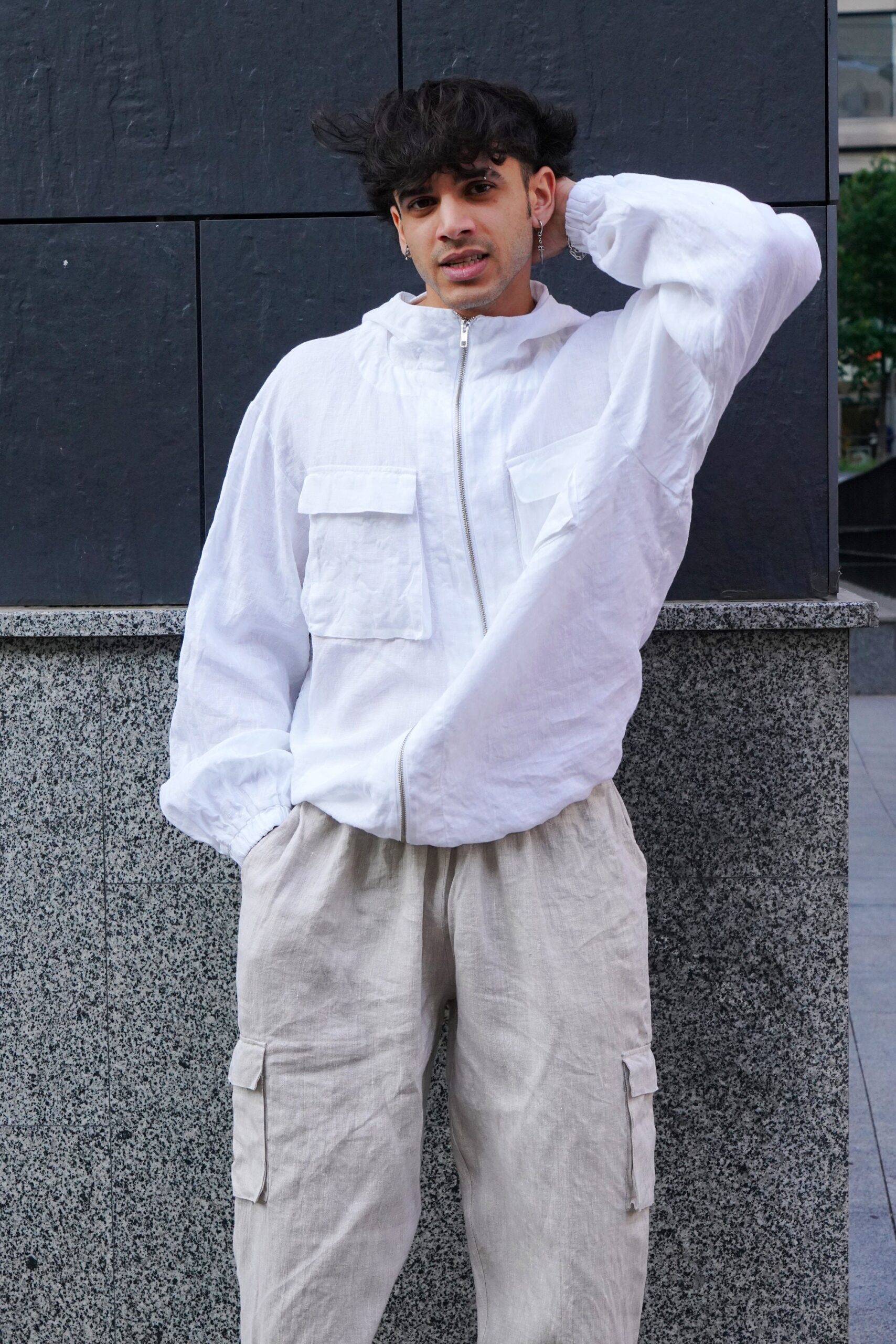 This jacket is made from 100% Linen and is available in a variety of colors.
