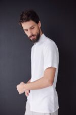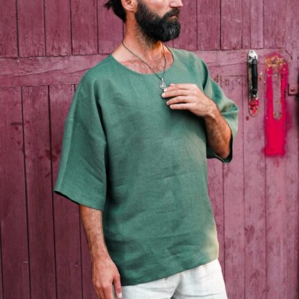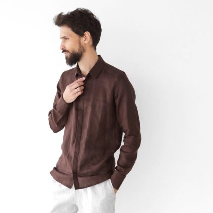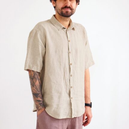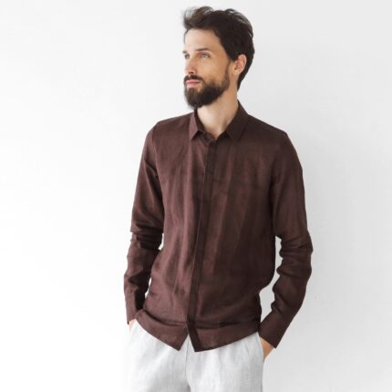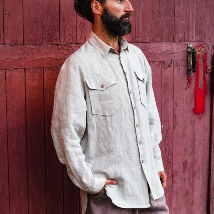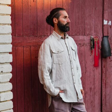 Comfortable and stylish men’s shirt. Made from 100% linen and available in many colors. This shirt is versatile, wear it on the street, at the office, business meeting or at home. The natural fabric molds to your body shape and over time becomes softer.