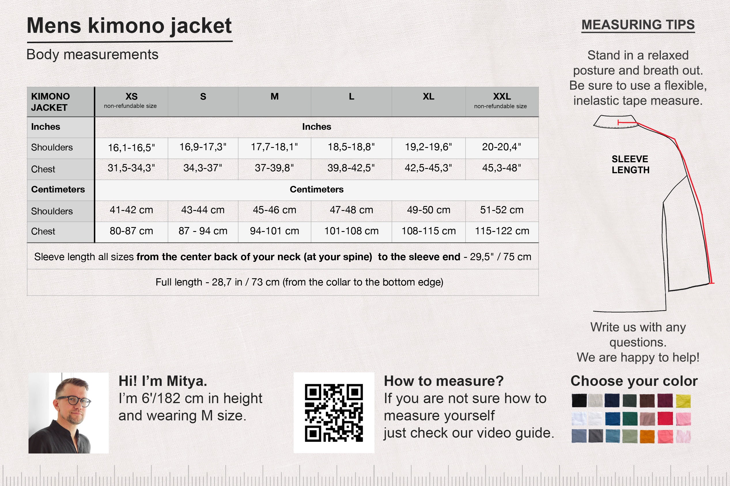 This kimono jacket is made from 100% Linen and is available in a variety of colors.