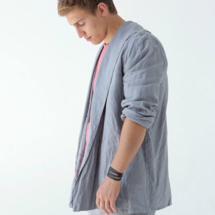 Inspired by kimono-style outerwear, the jacket drapes elegantly while providing comfort and ease of movement. Its loose, wide sleeves and flowy structure make it a perfect layering piece for any season.