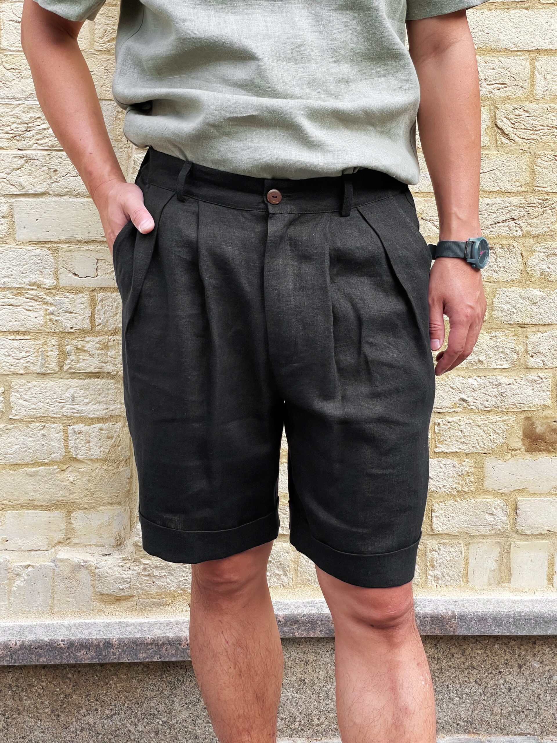 Loose-fit shorts are made from 100% Linen and available in a variety of colors.