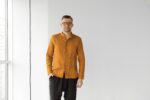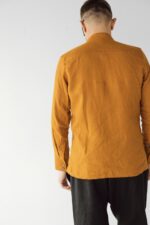 Saffron linen men's hidden botton dress shirt.
