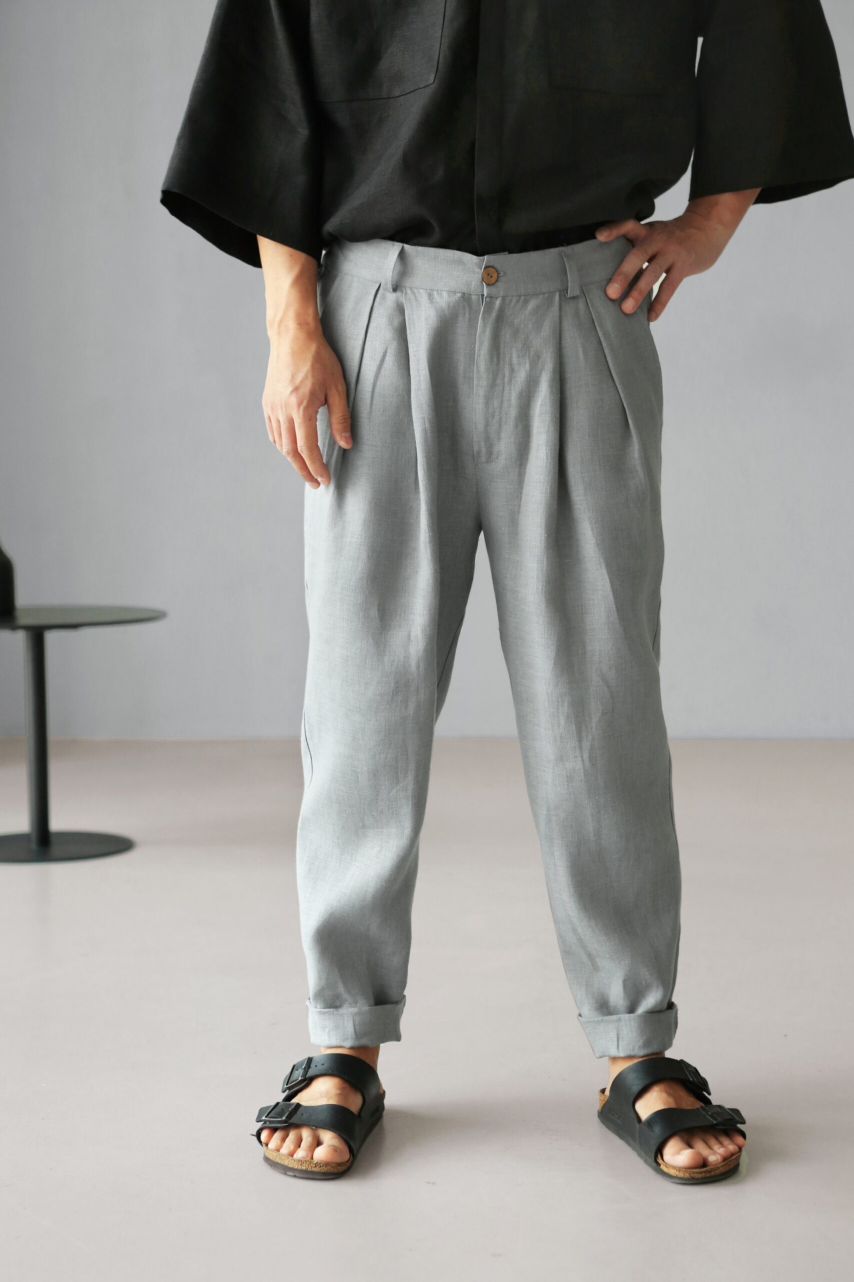 Tailored Linen Slacks Cropped Leg Linen for Men Soft Outline