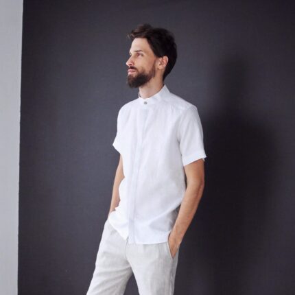 Men’s linen shirt short sleeve. Color white. Goog gift for him Comfortable and stylish men’s shirt. Made from 100% linen